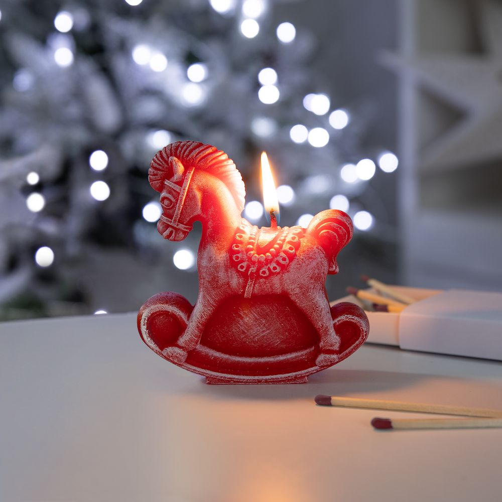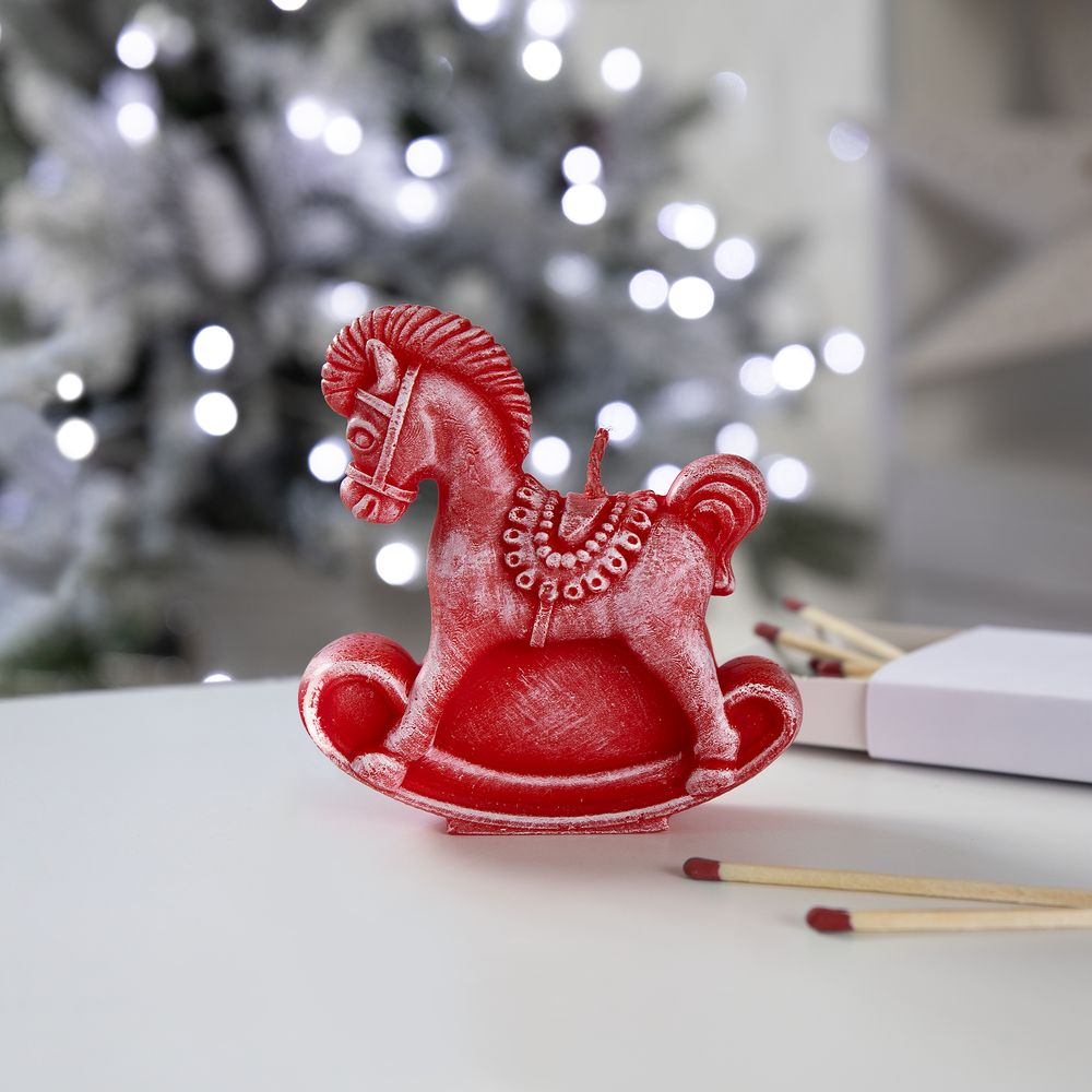 Свеча фигурная «Лошадка-качалка», красная купить оптом и в розницу с нанесением логотипа в Ростове-на-Дону