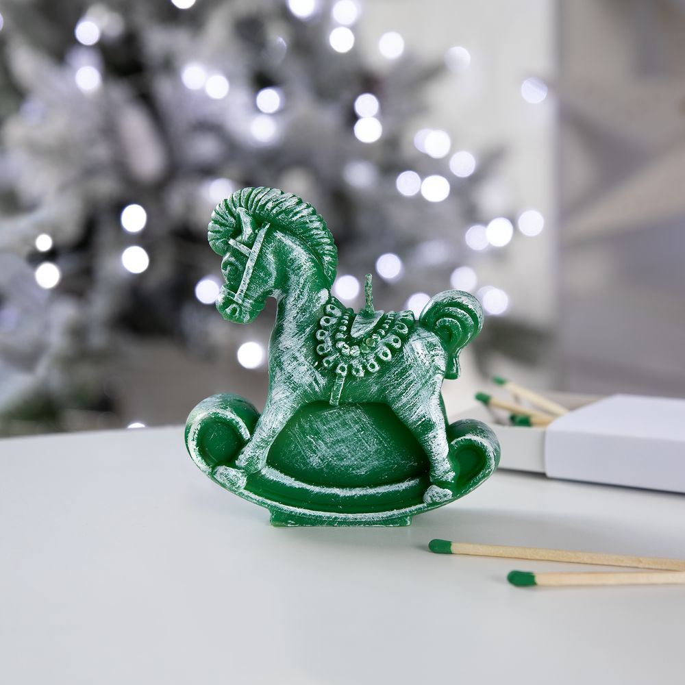Свеча фигурная «Лошадка-качалка», зеленая