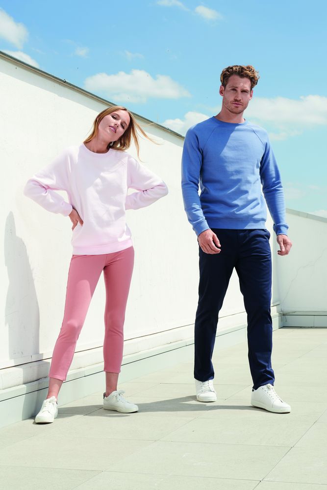 Свитшот унисекс из органического хлопка с круглым вырезом и рукавами реглан. Манжеты и низ изделия отделаны резинкой 2х2. Укрепляющая тесьма по вороту. Внутренняя сторона с начесом.