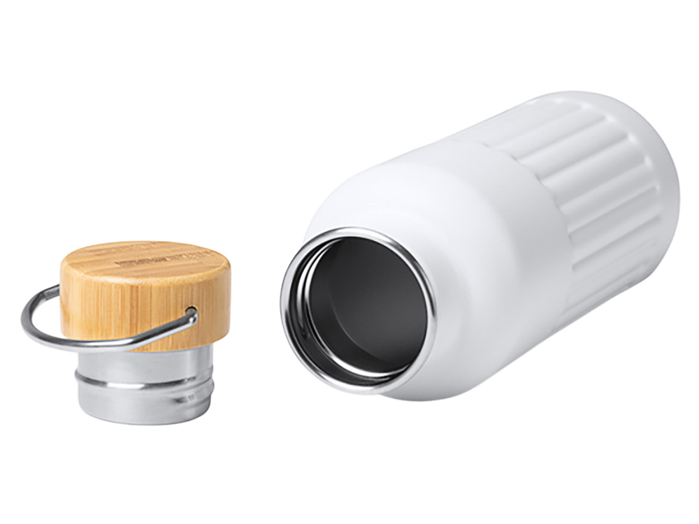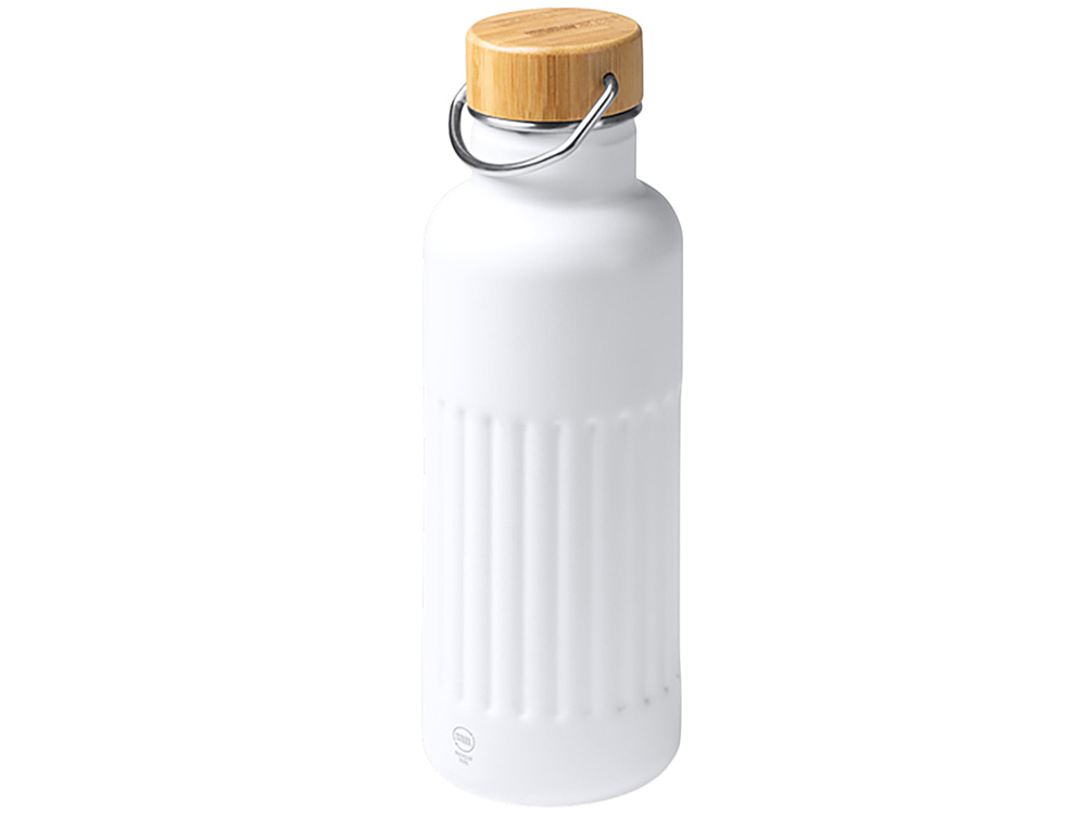 Термобутылка из переработанной нержавеющей стали 304 с двойными стенками и бамбуковой крышкой. Объём: 500 мл. Упакована в экологичную коробку.