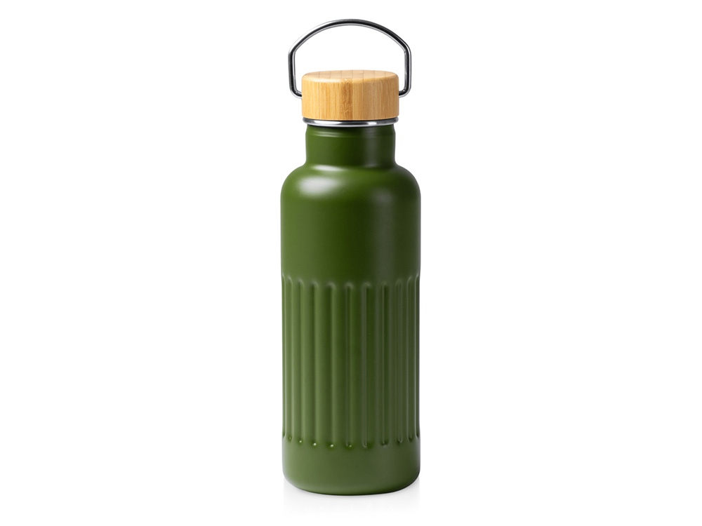 Термобутылка из переработанной нержавеющей стали 304 с двойными стенками и бамбуковой крышкой. Объём: 500 мл. Упакована в экологичную коробку.