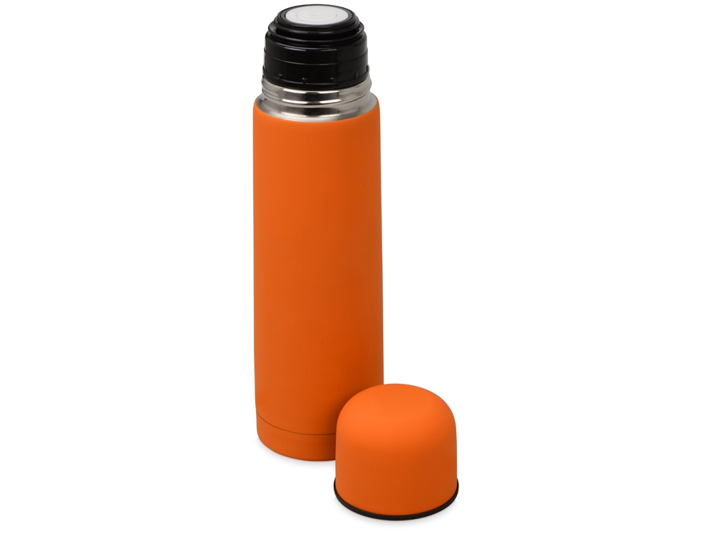 Универсальный термос с мягким прорезиненным покрытием софт-тач. Удобно и приятно держать в руке. Благодаря вакуумной изоляции и двойным стенкам сохраняет напитки горячими 24 часа. Герметичный клапан открывается и закрывается по легкому нажатию. Термос поставляется в дорожном чехле из искусственной кожи.