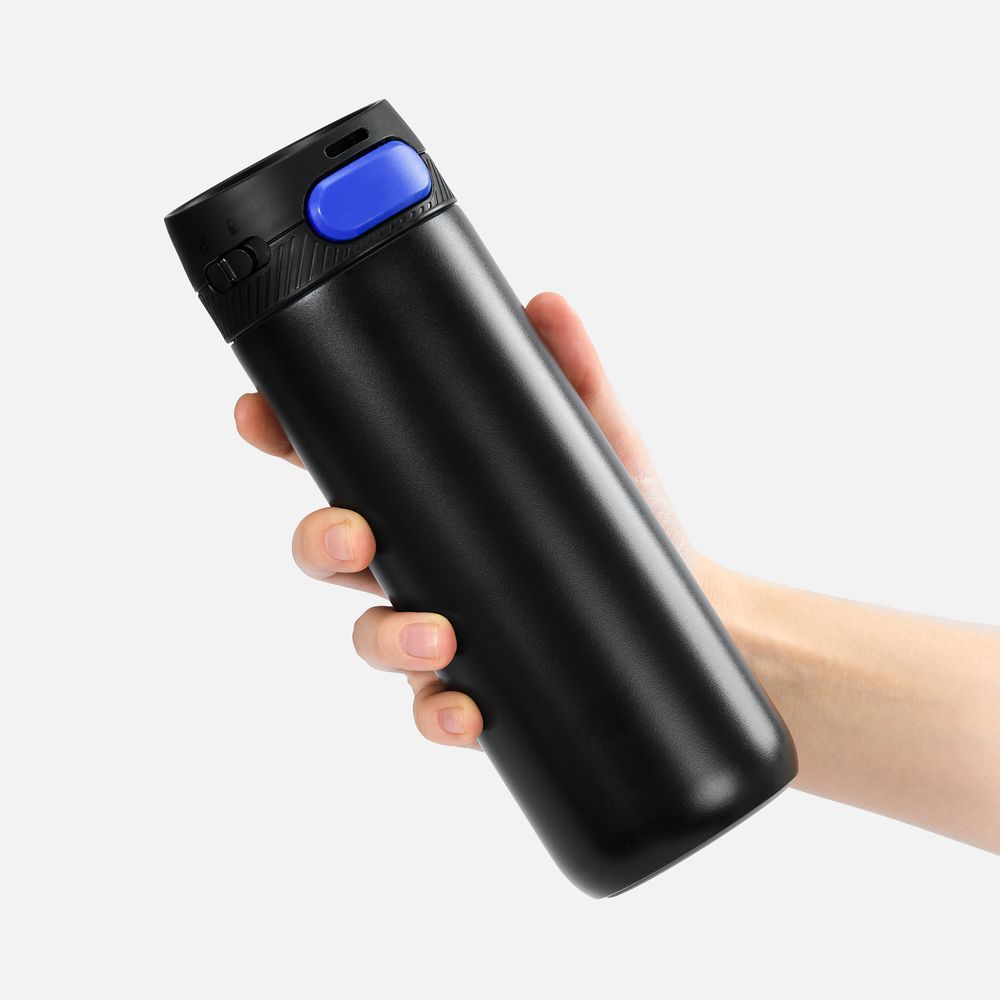 Термостакан X1 с цветной кнопкой, черный с синим
