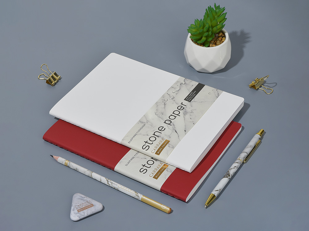 Тетрадь с каменной бумагой А5 Carrara 40 л., линейка, бордовый купить оптом и в розницу с нанесением логотипа в Ростове-на-Дону