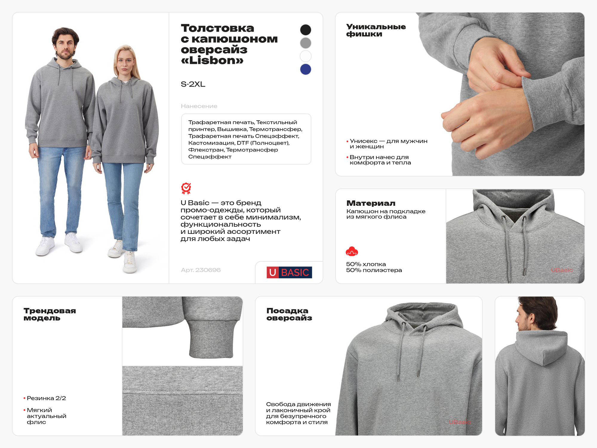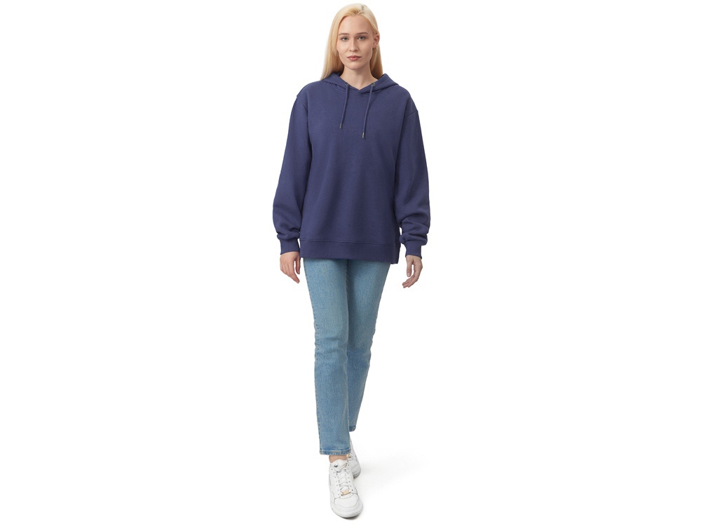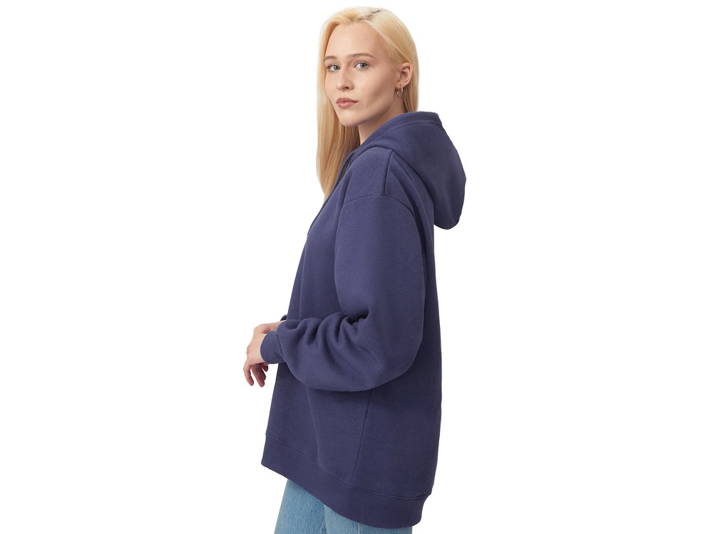 Толстовка с капюшоном из мягкого флиса из смеси хлопка и полиэстера. Модель комфортной и актуальной посадки оверсайз отлично подходит для обычной жизни и в качестве промо мерча. - оверсайз посадка - удобный капюшон на подкладке -мягкое и уютное полотно из смеси хлопка и полиэстеры - Низ и рукава обработаны манжетами из риба 2х2 и дополнительно отстрочены для укрепления - увеличенная зона для нанесения из-за отсутствия кармана