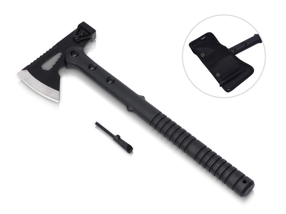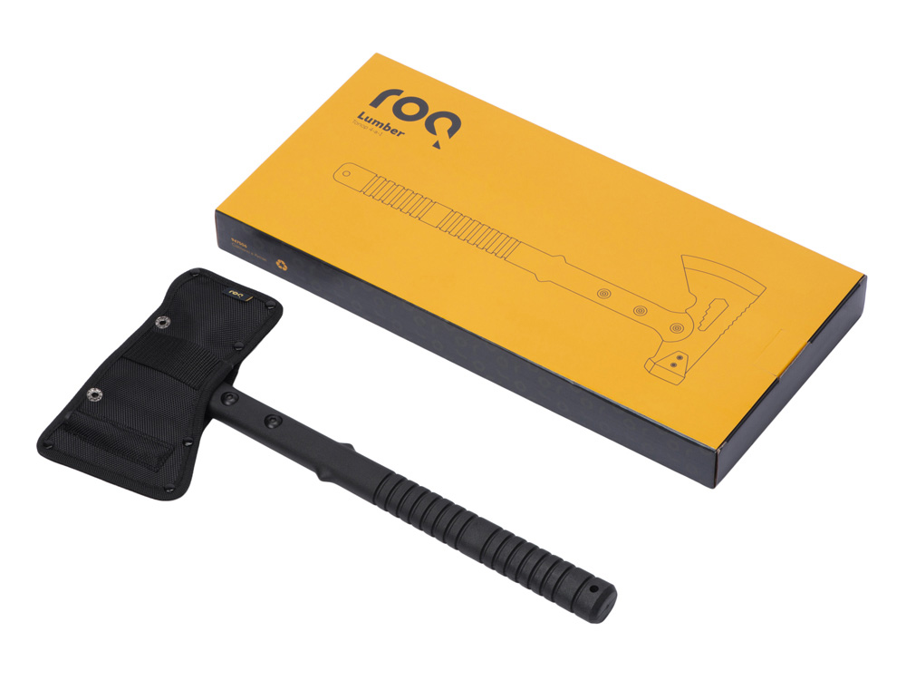 Топор 4-в-1 Lumber бренда roq выполнен из нержавеющей стали 420 марки. Товар поставляется в нейлоновом чехле. В чехле есть специальный кармашек с огнивом. Чтобы высечь искры для разжигания костра, возьмите огниво за рукоять в одну руку и проведите лезвием по стержню огнива под углом в 90 градусов в направлении от себя. В целях безопасности не высекайте искры в помещении или около легко воспламеняемых материалов. Поставляется с чехлом в картонной коробке. - Топор - Молоток - Шестигранник на 5 размеров (8/10/12/14/16 мм) - Огниво