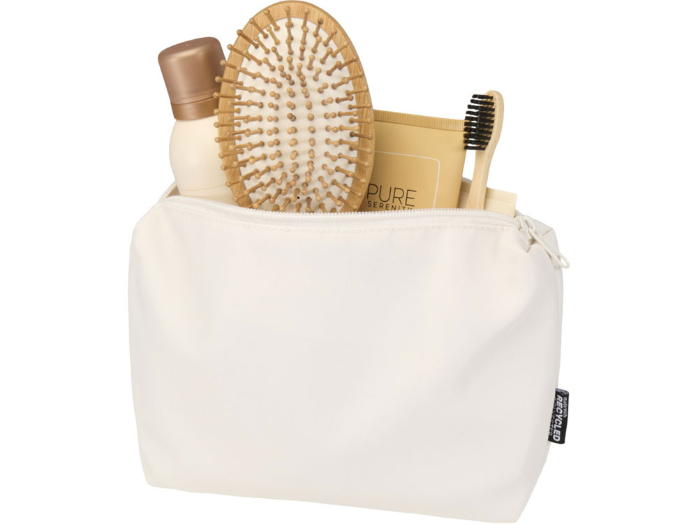 Дорожная косметичка Trip Aware™ из переработанных материалов — это компактное и простое решение для переноски повседневных вещей первой необходимости. Изготовленная из полиэстера с саржевым переплетением плотностью 290D, имея трикотажную основу и подкладку из материала RPET плотностью 210D/PU, она отличается лаконичным, минималистичным дизайном. В основном отделении достаточно места для туалетных принадлежностей и мелких предметов, что делает ее идеальным вариантом для коротких поездок или организованного хранения вещей на ходу. Каждая сумка также поставляется с индикатором Aware™. Эта инновационная функция позволяет пользователям отслеживать происхождение и путь своего товара с помощью QR-кода, повышая прозрачность цепочки поставок и способствуя более прочной связи между продуктом и процессом его производства. Объем: 2 литра.