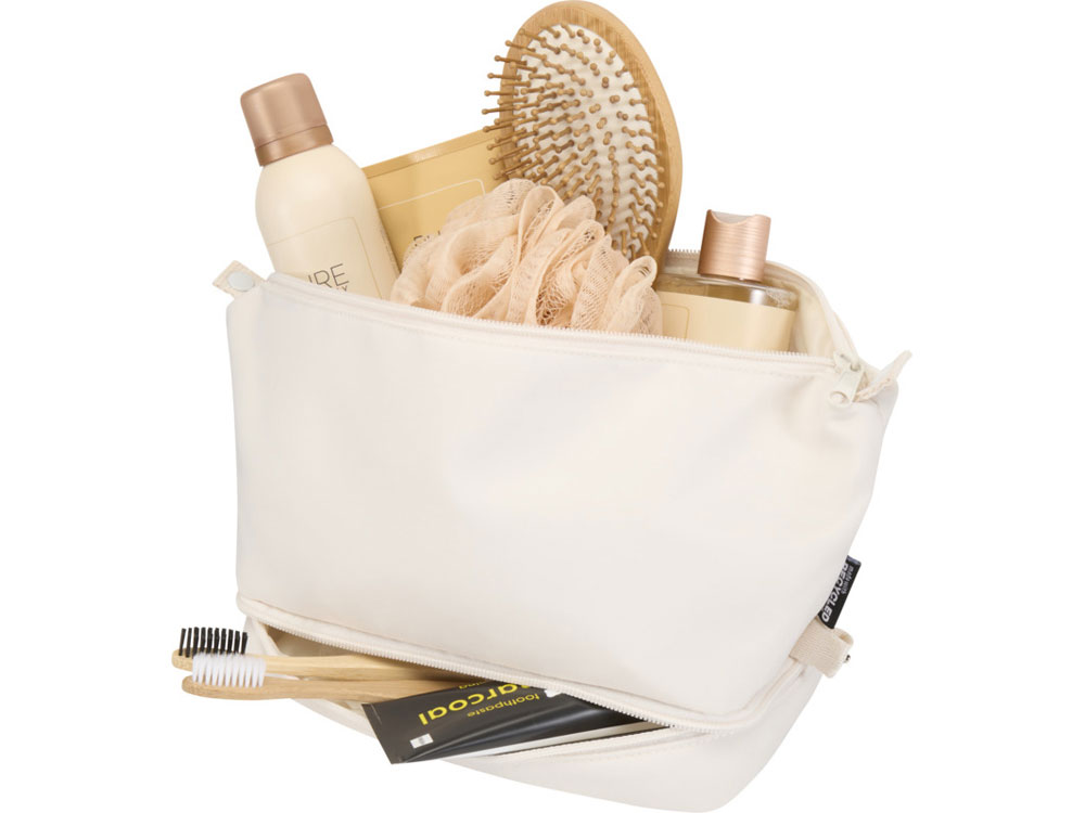 Дорожная косметичка Trip Aware™ из переработанных материалов — это компактная, структурированная сумка, предназначенная для аккуратного хранения личных вещей во время путешествия. Изготовленная из полиэстера саржевого переплетения плотностью 290D с трикотажной основой и подкладкой из материала RPET плотностью 210D/PU, она отличается лаконичным дизайном и практичными отделениями. Основное отделение оснащено внутренним карманом на молнии для мелких предметов, а нижнее отделение в форме раскладушки позволяет разделить предметы первой необходимости для более легкого доступа и лучшей организации. Каждая сумка также поставляется с индикатором Aware™. Эта инновационная функция позволяет пользователям отслеживать происхождение и путь своего товара с помощью QR-кода, повышая прозрачность цепочки поставок и способствуя более прочной связи между продуктом и процессом его производства. Объем: 6 литров.