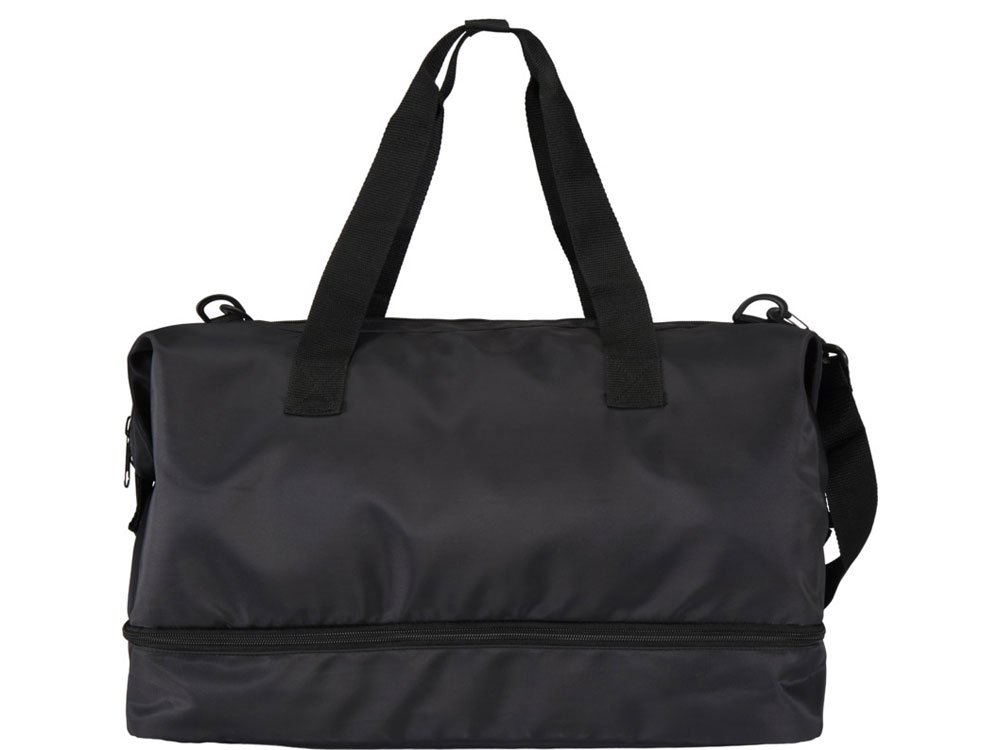 Спортивная сумка Трип Эви из переработанного материала — это универсальный и вместительный спутник, который идеально подходит для коротких поездок и позволяет с легкостью переносить все необходимое. Изготовлена из прочного полиэстера саржевого переплетения плотностью 290D с мягкой трикотажной основой и подкладкой из материала RPET плотностью 210D/PU и разработана для практичного использования и комфорта. Основное отделение включает в себя большой карман на молнии со специальными отделениями для паспорта, ручек и цепочки для ключей, а также два внутренних кармана-слайдера и два держателя для бутылок с водой. Отдельное нижнее отделение открывается по принципу раскладушки и идеально подходит для хранения обуви или разделения вещей. Каждая сумка также поставляется с индикатором Aware™. Эта инновационная функция позволяет пользователям отслеживать происхождение и путь своего товара с помощью QR-кода, повышая прозрачность цепочки поставок и способствуя более прочной связи между продуктом.
