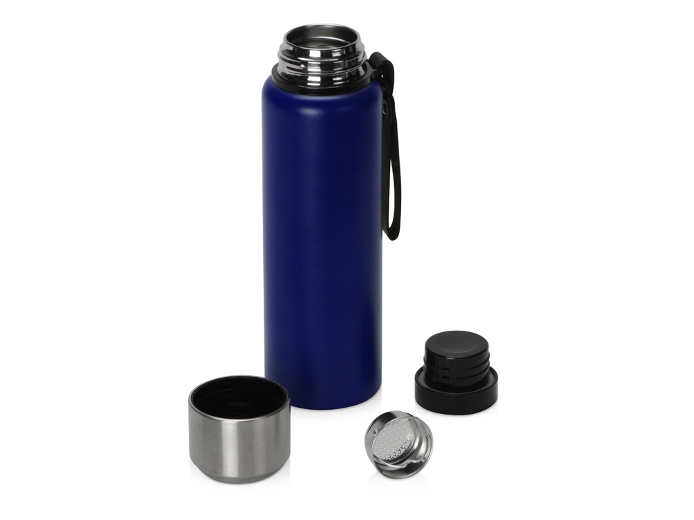 Вакуумный термос c двойными стенками из пищевой нержавеющей стали 304 марки для небольших путешествий и отдыха на природе. Надежно удерживает тепло и холод в течение 24 часов. Крышку можно использовать в качестве чашки. В комплекте имеется съемное ситечко из нержавеющей стали. Имеется прочный и удобный ремешок для переноски. Корпус покрыт специальной порошковой краской для надежного хвата и защиты от царапин. Объем 800 мл. - Удержание тепла и холода в течение 24 часов. - Удобный ремешок для переноски. - Матовое порошковое покрытие. - Двойные стенки из нержавеющей стали 304 (18/8). - Съемное ситечко. Номинальный объем термоса 800 мл, при использовании ситечка максимальный полезный объем составит 710 мл.