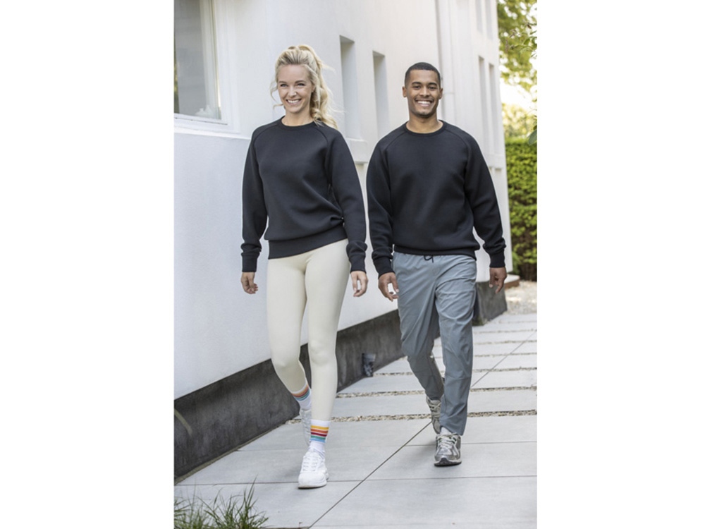 Спортивный свитер унисекс с длинными рукавами и круглым вырезом Yukon изготовлен из усовершенствованной ткани интерлок, в состав которой входят вискозное волокно, полиэстер и эластан. Это обеспечивает ощущение гладкости и гибкости, а также необходимую степень растяжимости. Такое сочетание обеспечивает влагоотводящие свойства, сохранение формы и мягкость, которая повторяет движения тела, что делает его идеальным как для активного, так и для повседневного ношения. Свитер Yukon с лаконичным, унисекс-силуэтом отличается обтекаемым кроем и подходит для любого гардероба. Прочная ткань и воздухопроницаемая конструкция делают его идеальным вариантом как для многослойного образа, так и для ношения отдельно. Интерлок: 27% вискоза, 66% переработанный полиэстер, 7% эластан, 350 г/м2.