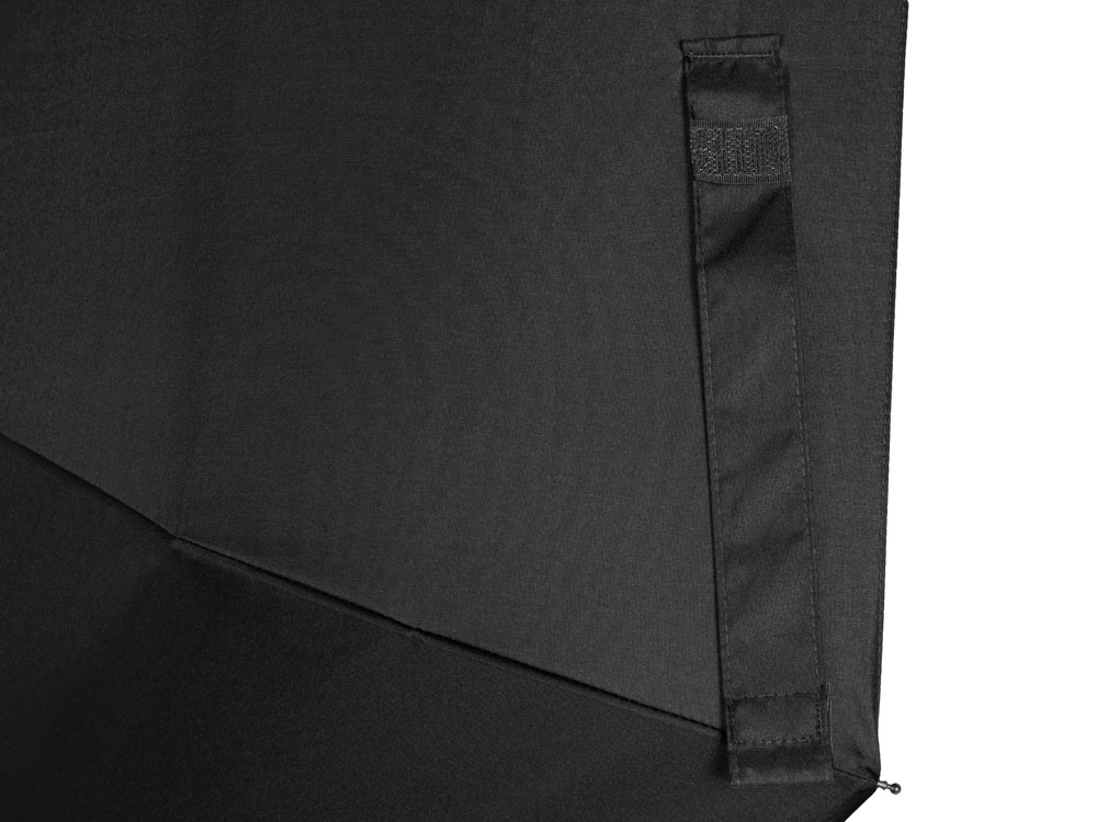 Купол зонта выполнен из переработанного пластика. Гибкие спицы из стекловолокна делают зонт стойким к порывам ветра. Удобная ручка софт тач. Фиксирующая купол застежка на липучке шириной 3 см - дополнительная опция для нанесения вашего логотипа.