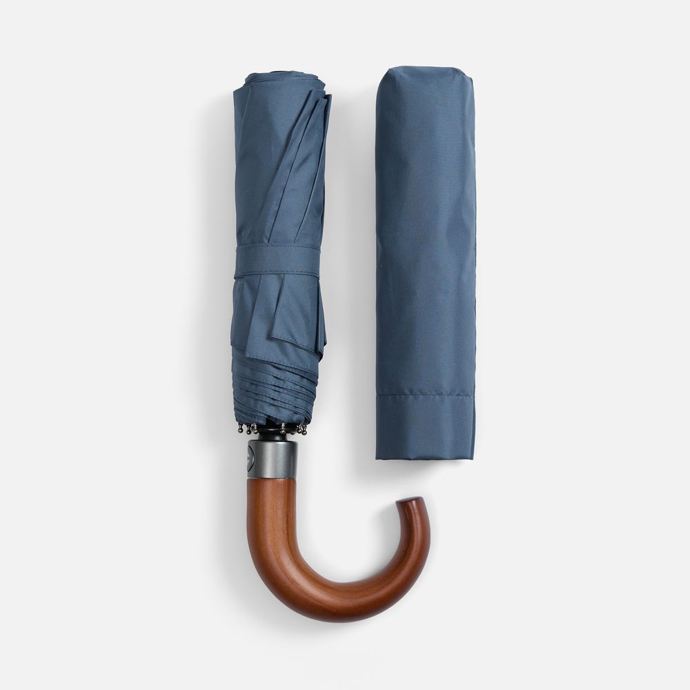 Зонт складной Classic, темно-синий с темной ручкой купить оптом и в розницу с нанесением логотипа в Ростове-на-Дону