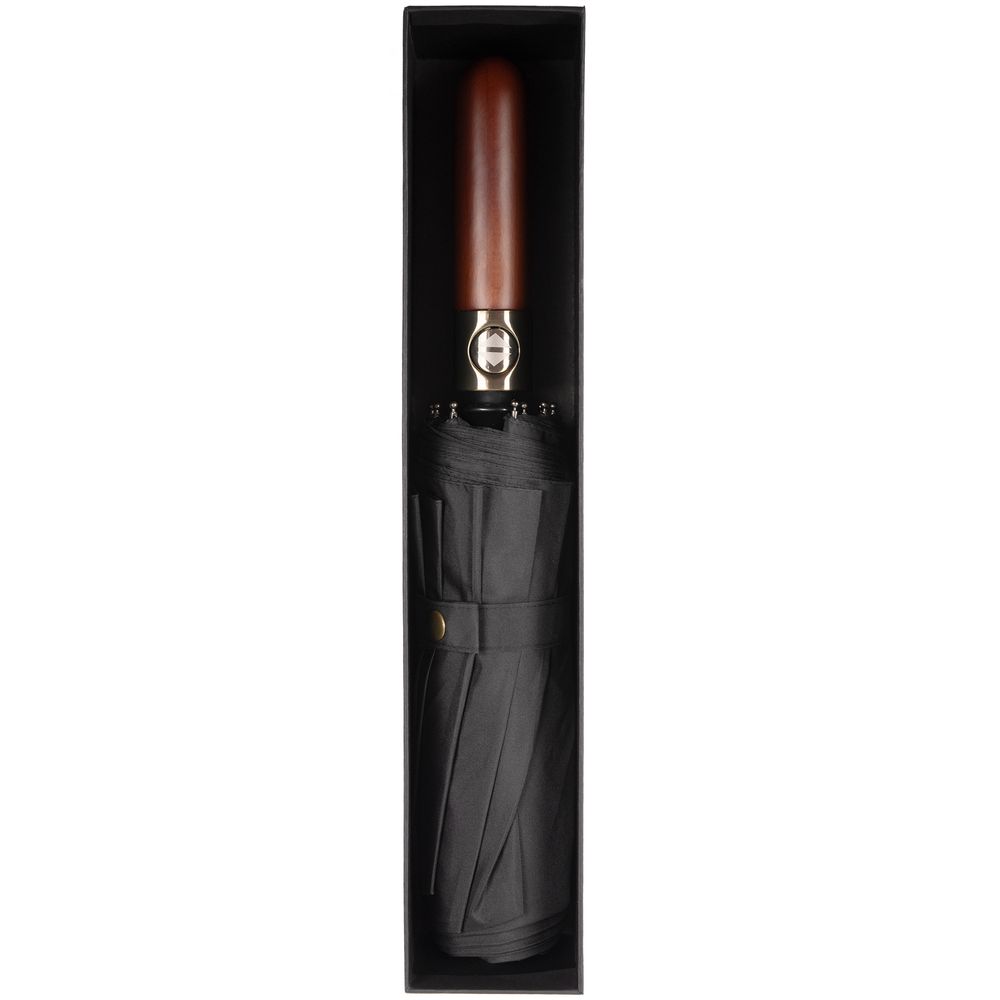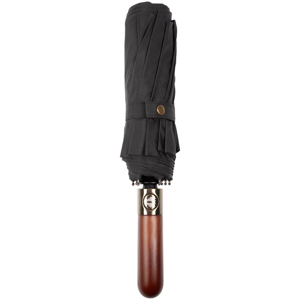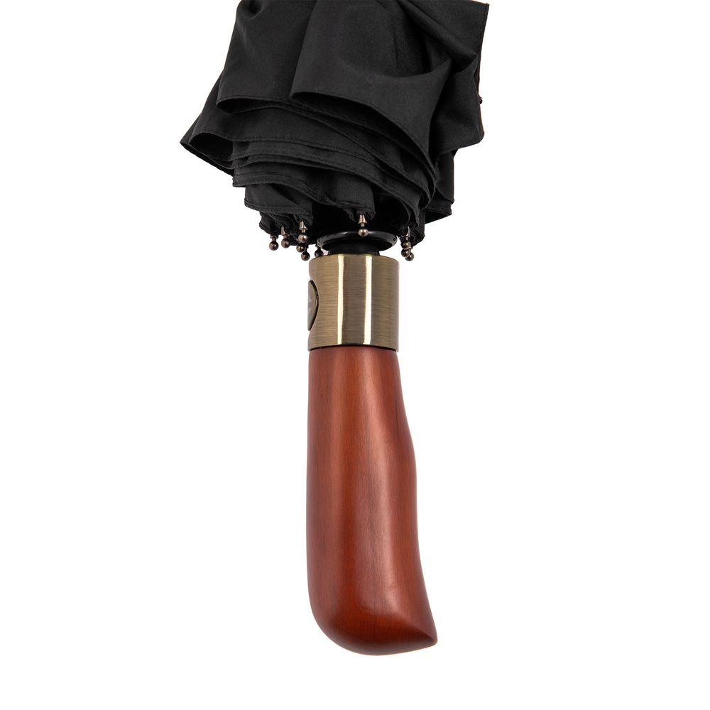 Складной зонт с большим куполом, системой антишторм и эргономичной ручкой из дерева.