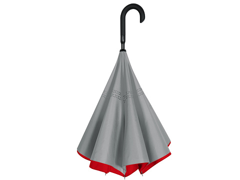 Зонт с обратным сложением складывается внутрь. Очень удобен в использовании, например, во время посадки в машину при складывании вода остается внутри купола. Для просушки зонт можно поставить вертикально на пол в сложенном виде, что позволяет воде стекать без раскрытия зонта. Двойной купол из 190Т эпонжа. Ручка с мягким покрытием soft-touch для большего комфорта.